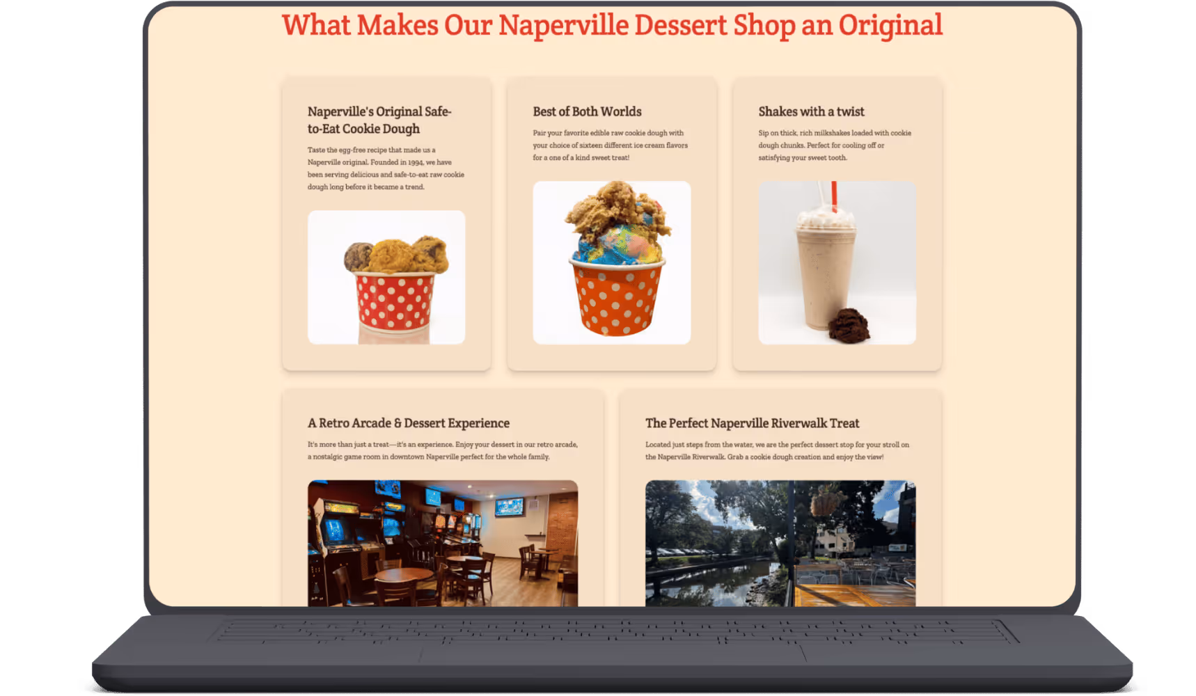 The local food scene in Naperville is competitive. Customers have options, and they search online before deciding where to go. Cookie Dough Creations needed visibility where customers were already looking.